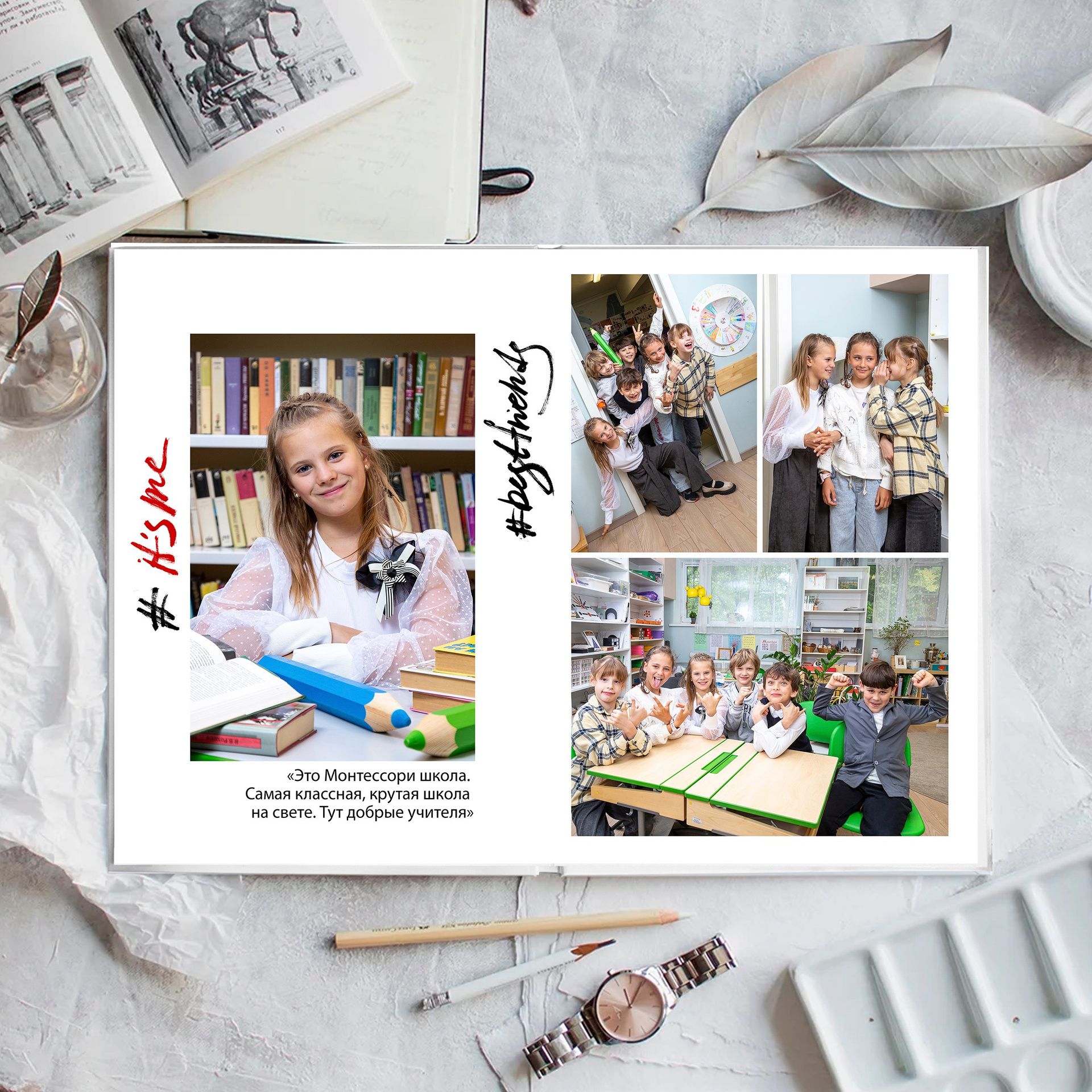 2️⃣Разворот — до 6 фото с друзьями (фото выбирают родители)